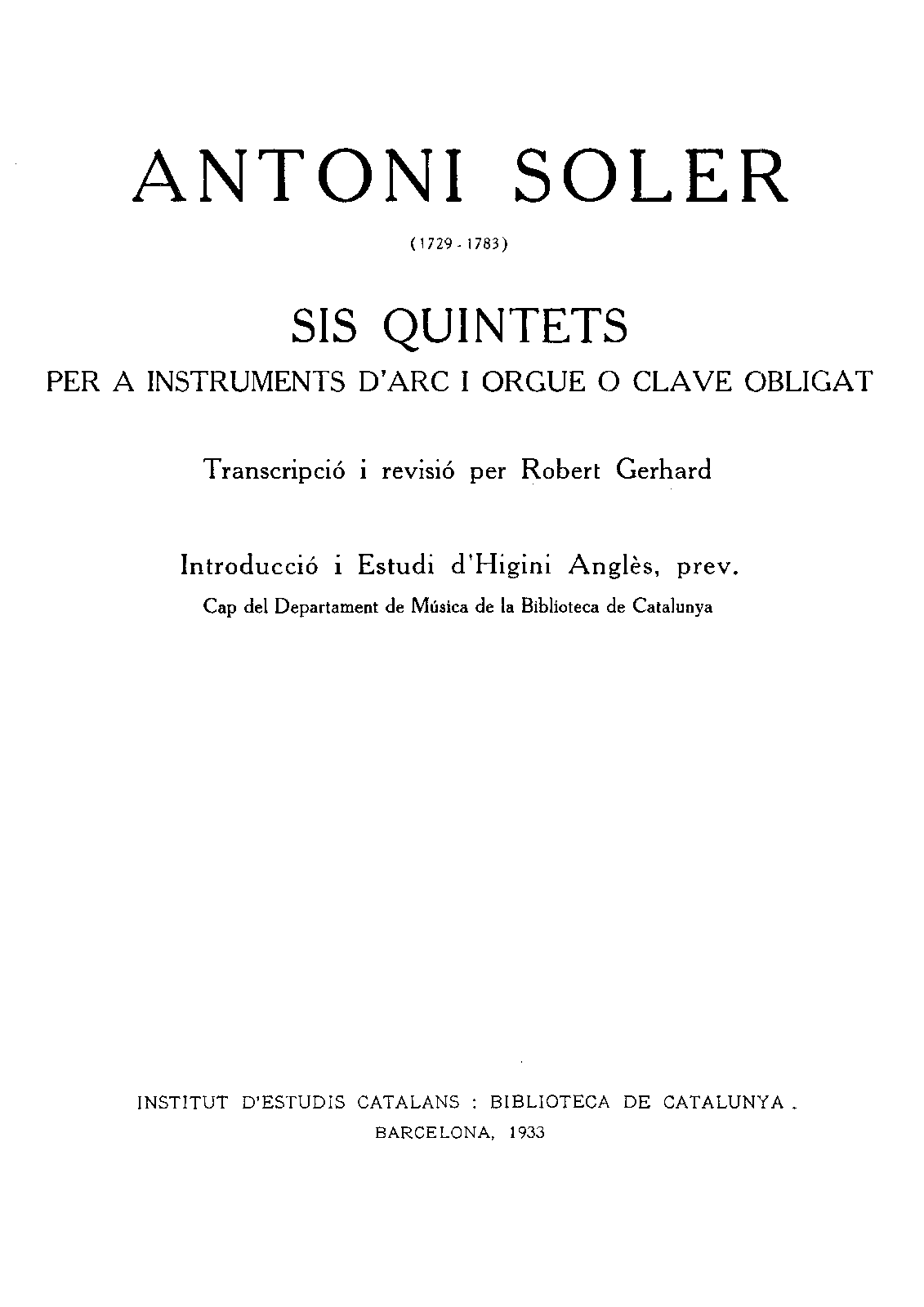 | Alternative. Title | Sis quintets per instruments d'arc i orgue o clave obligat |