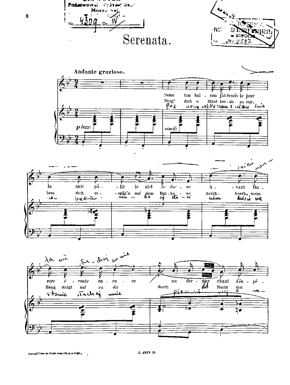 There were multiple reissues from Hainauer of the Serenata, and the reissues all appear to have the plate number J. 2514 H.