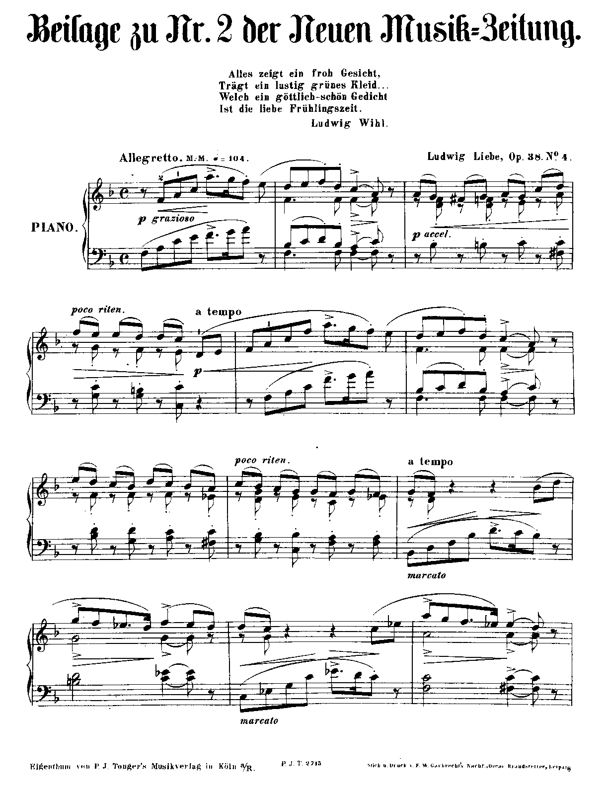 Neue Musik-Zeitung, 1881, No.2. Cologne: P.J. Tonger, 1881. Plate P.J.T. 2715.