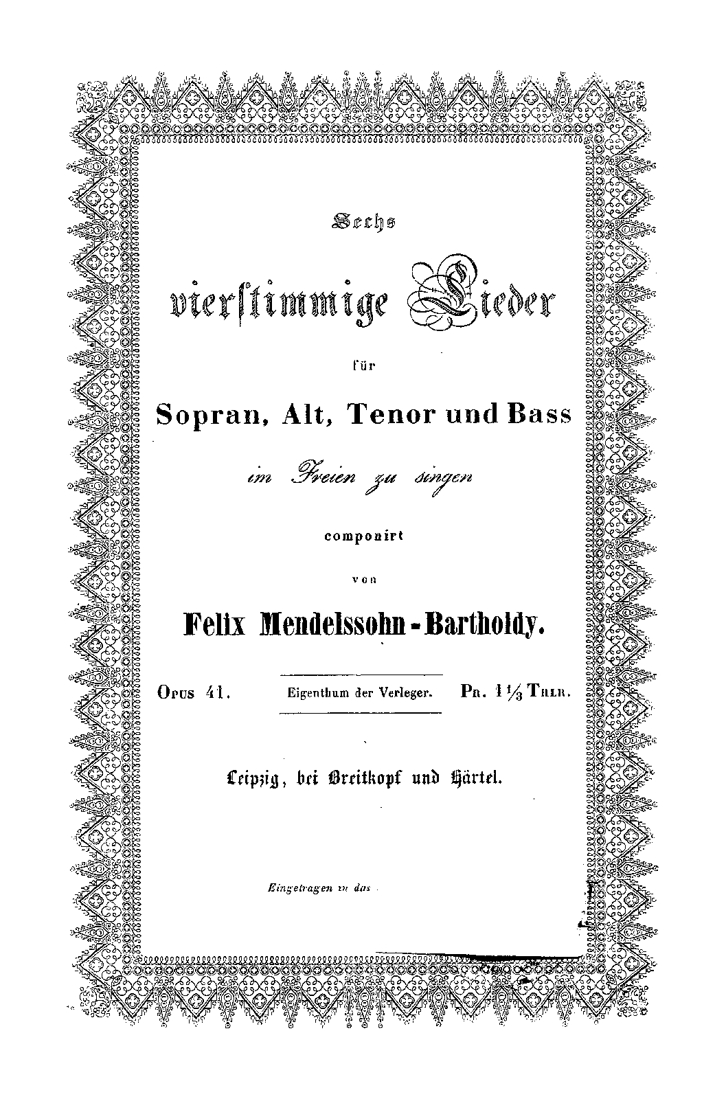 | Mendelssohn Lieder for 4-Part Chorus | |