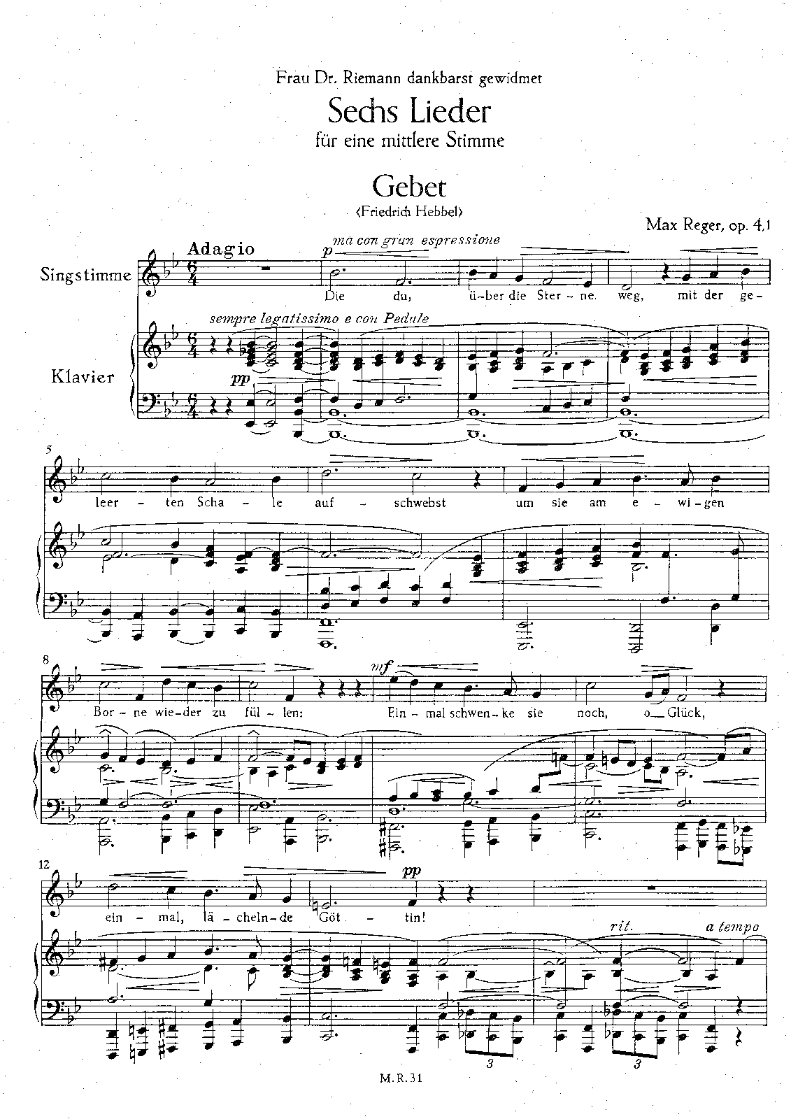 Max Reger: Sämtliche Werke, Band 31 Wiesbaden: Breitkopf und Härtel, 1955. Plate M.R. 31.URTEXT EDITION