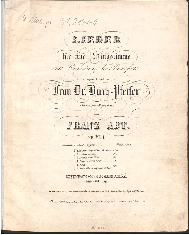| Dedication | Frau Dr. Birch-Pfeifer hochachtungsvoll gewidmet |