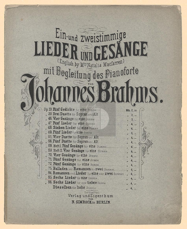 | First Publication. | 1882 (July) - Berlin: N. Simrock, Plate 8299 |
