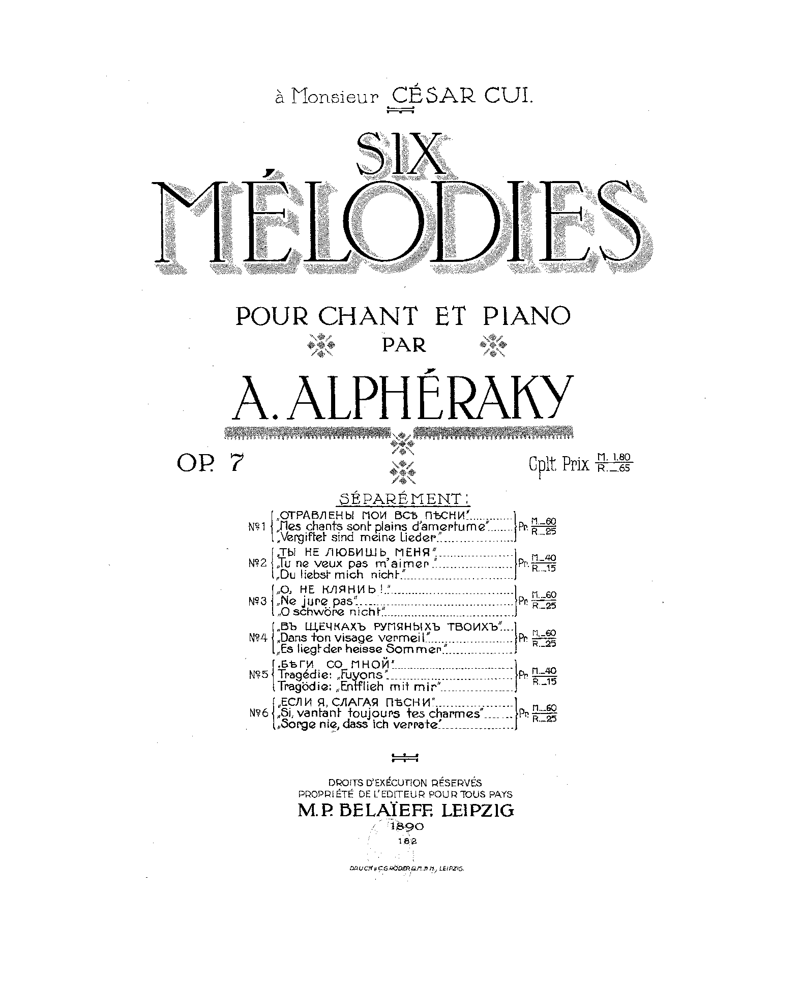 | Dedication | à Monsieur César Cui (1835–1918) |