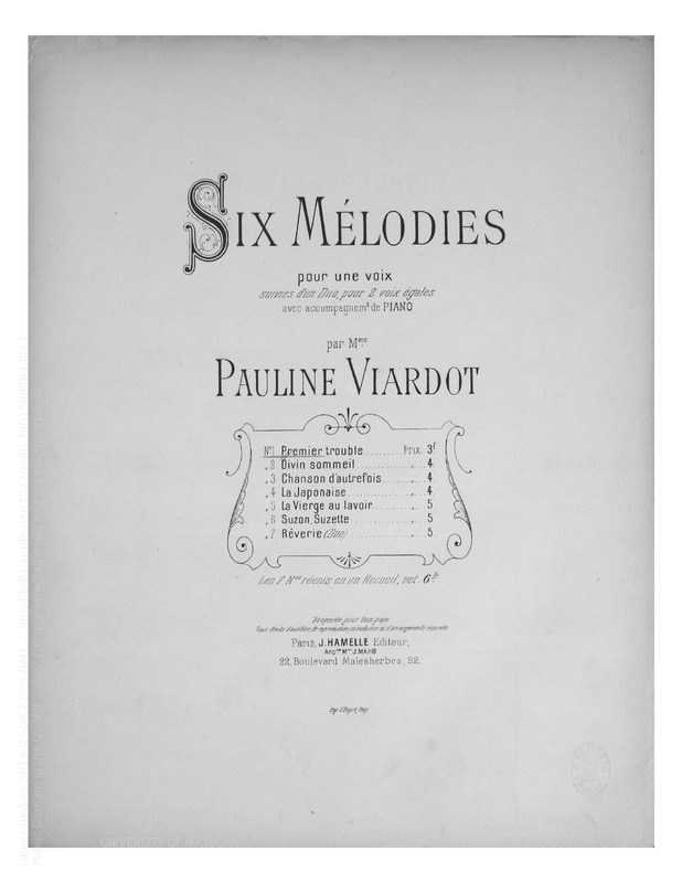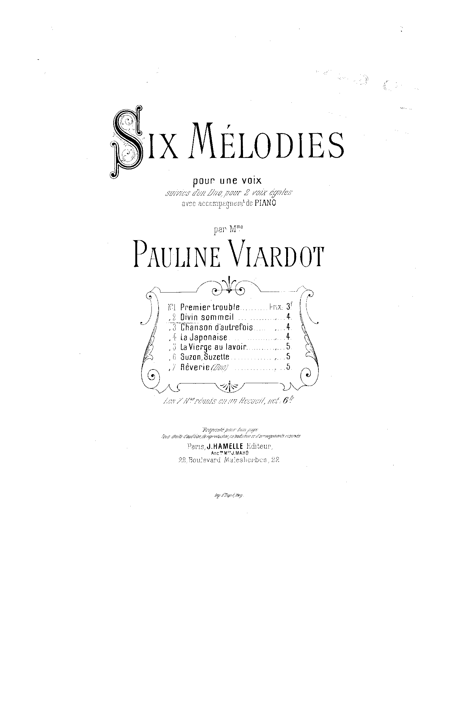 Six mélodies pour une voix suivies d'un duo pour deux voix égales