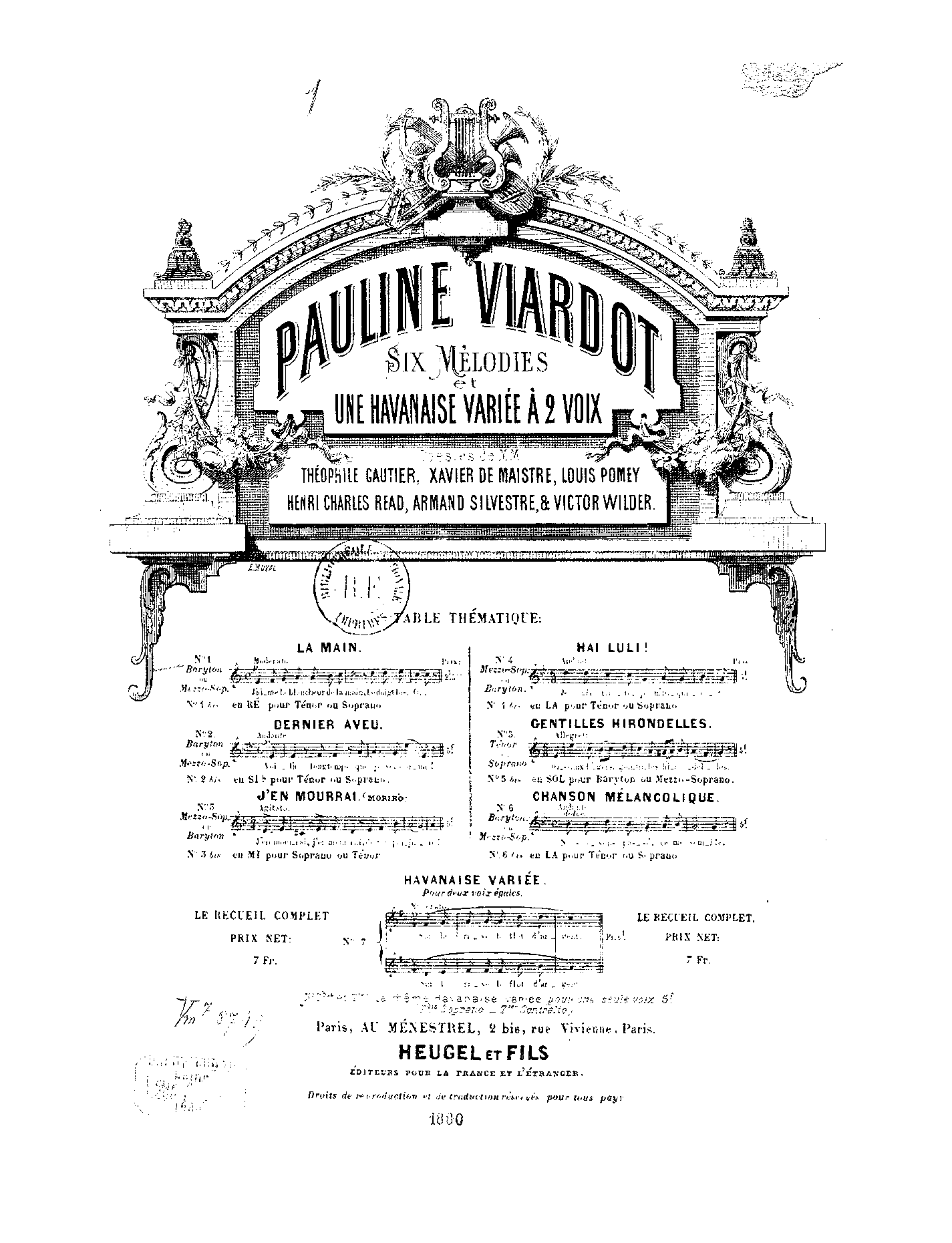 | Work Title | 6 Mélodies et une havanaise variée à 2 voix |