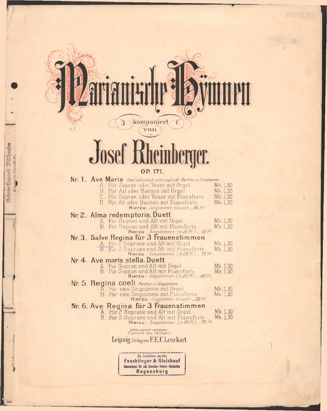 | Alternative. Title | Sechs Marianische Hymnen für 1, 2 oder 3 Frauenstimmen mit Orgel (oder Klavier) |