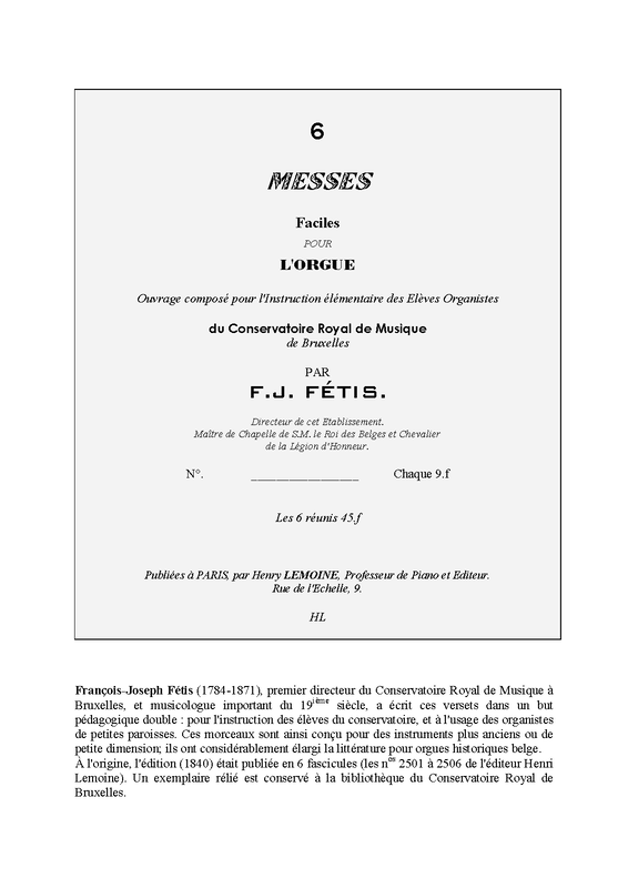 6 Messes faciles pour l'orgue (Fétis, François-Joseph)