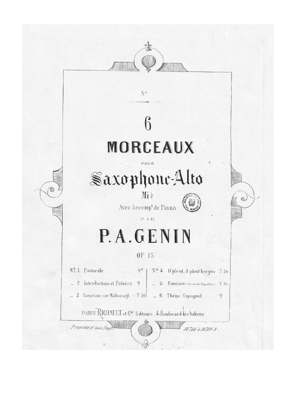 | Genre Categories | Pieces; For alto saxophone, piano; Scores featuring the alto saxophone; |