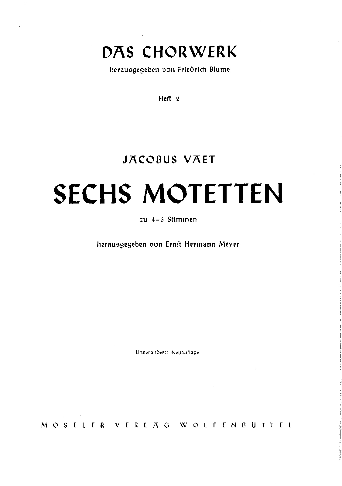 | Movements/SectionsMov'ts/Sec's | 6 motets: