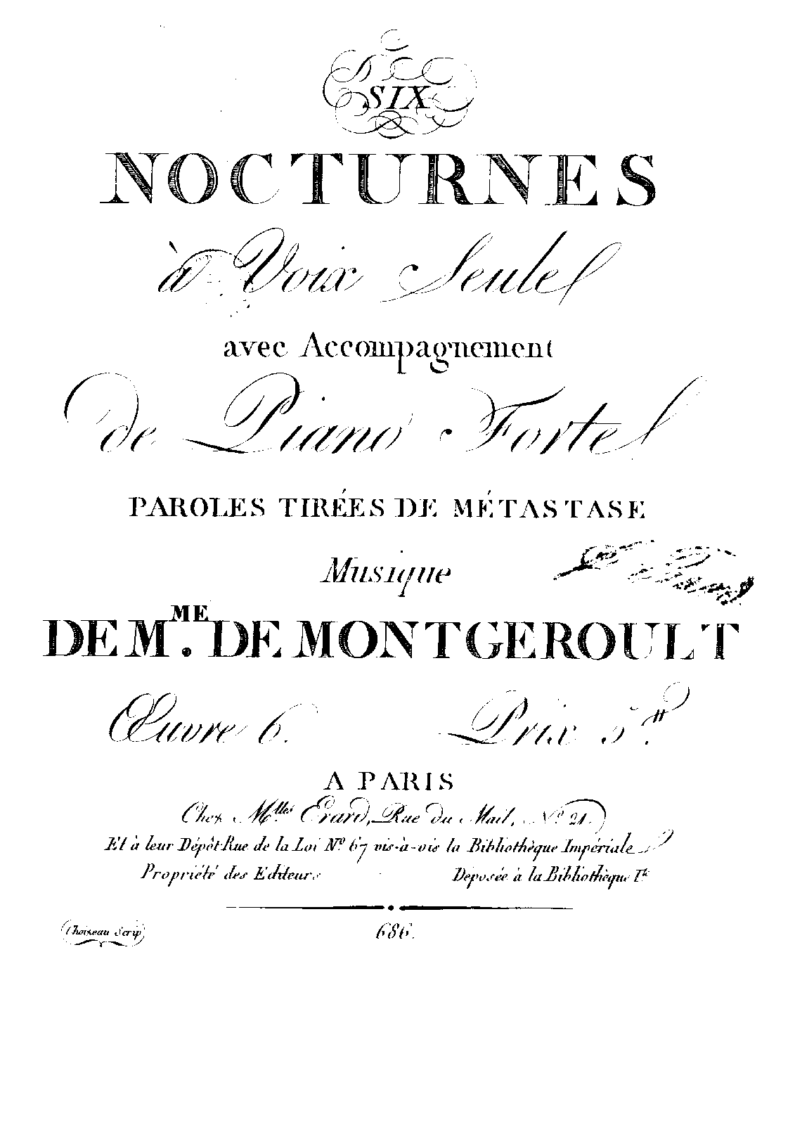 | Alternative. Title | Six Nocturnes à voix seule avec Accompagnement de Piano Forte |
