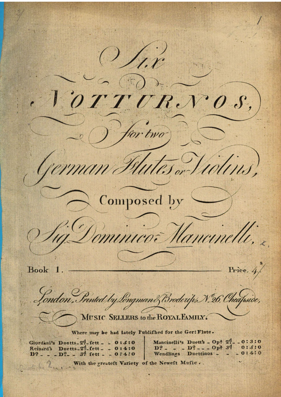 | Alternative. Title | Six Notturnos, for two German Flutes or Violins |