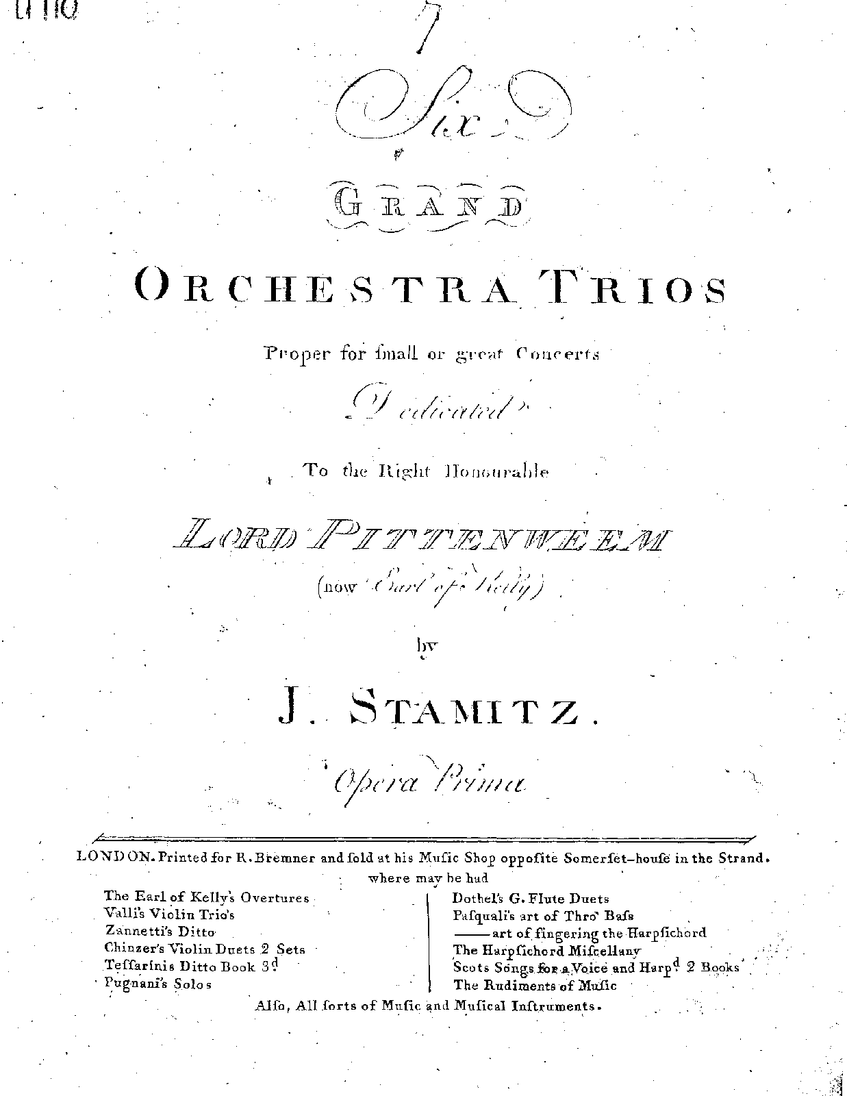 | Alternative. Title | Six Grand Orchestra Trios, proper for small or great Concerts |