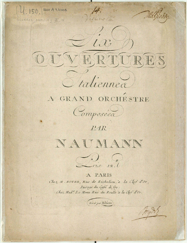 | Alternative. Title | Six ouvertures italiennes a grand orchêstre composées par Naumann |