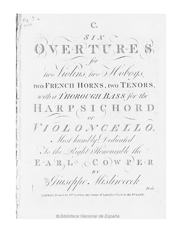 | Alternative. Title | Six Overtures for two Violins, two Hoboys, two French Horns, two Tenors [violas], with a Thorough bass for the Harpsichord or Violoncello |