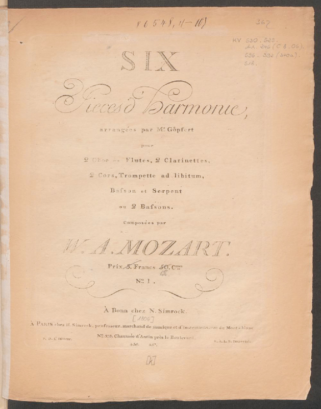 | Genre Categories | Harmonies; For 2 oboes, 2 clarinets, 2 bassoons (arr); Scores featuring the oboe (arr); |