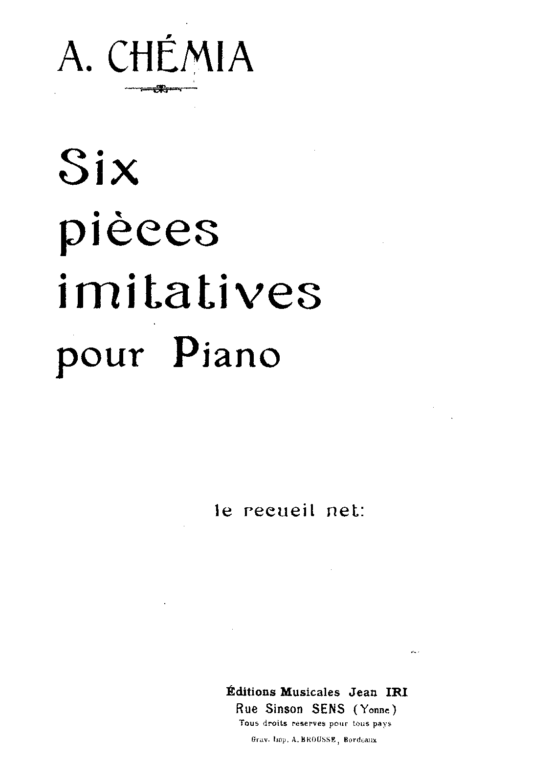 | Work Title | Six pièces imitatives |