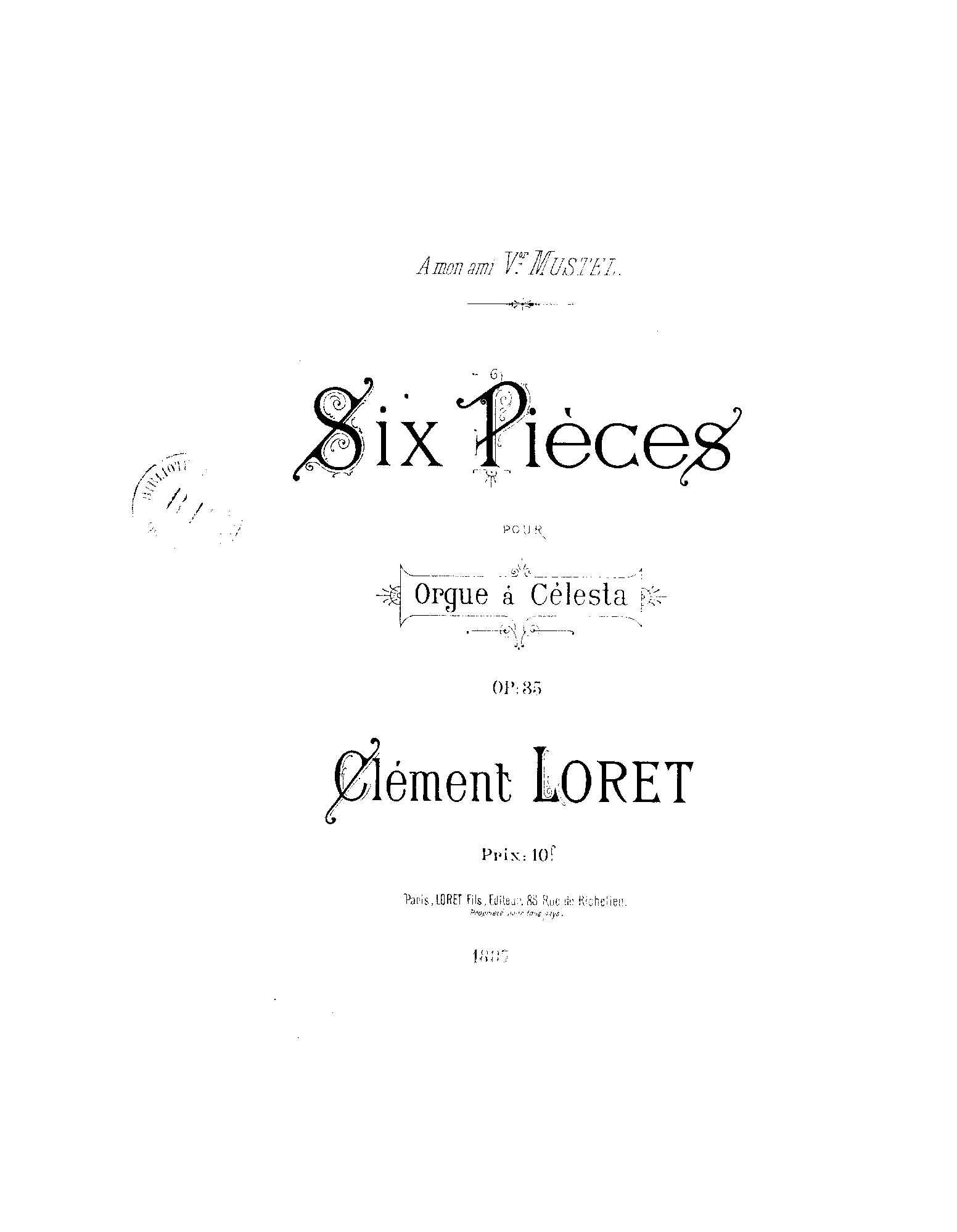 | Dedication | à mon ami Victor Mustel |