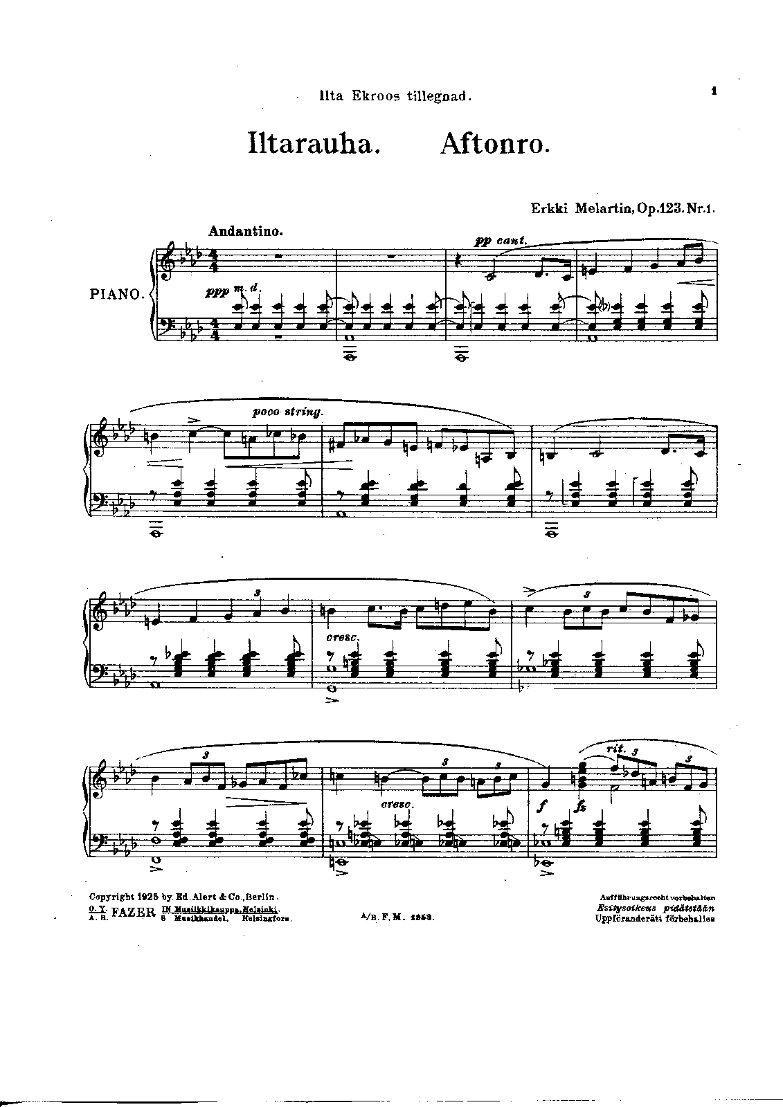| First Publication. | 1925-26 - Helsinki: Fazer |