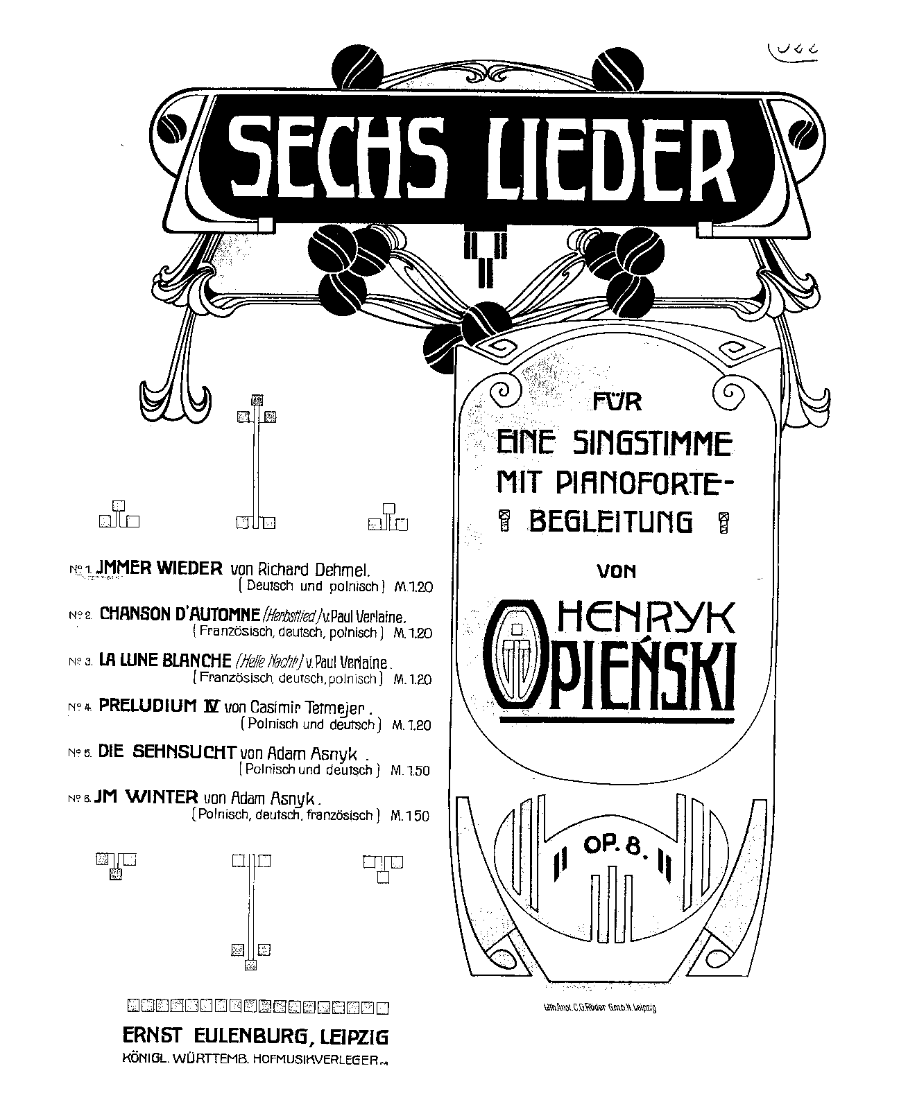 | Genre Categories | Songs; For voice, piano; For voices with keyboard; |