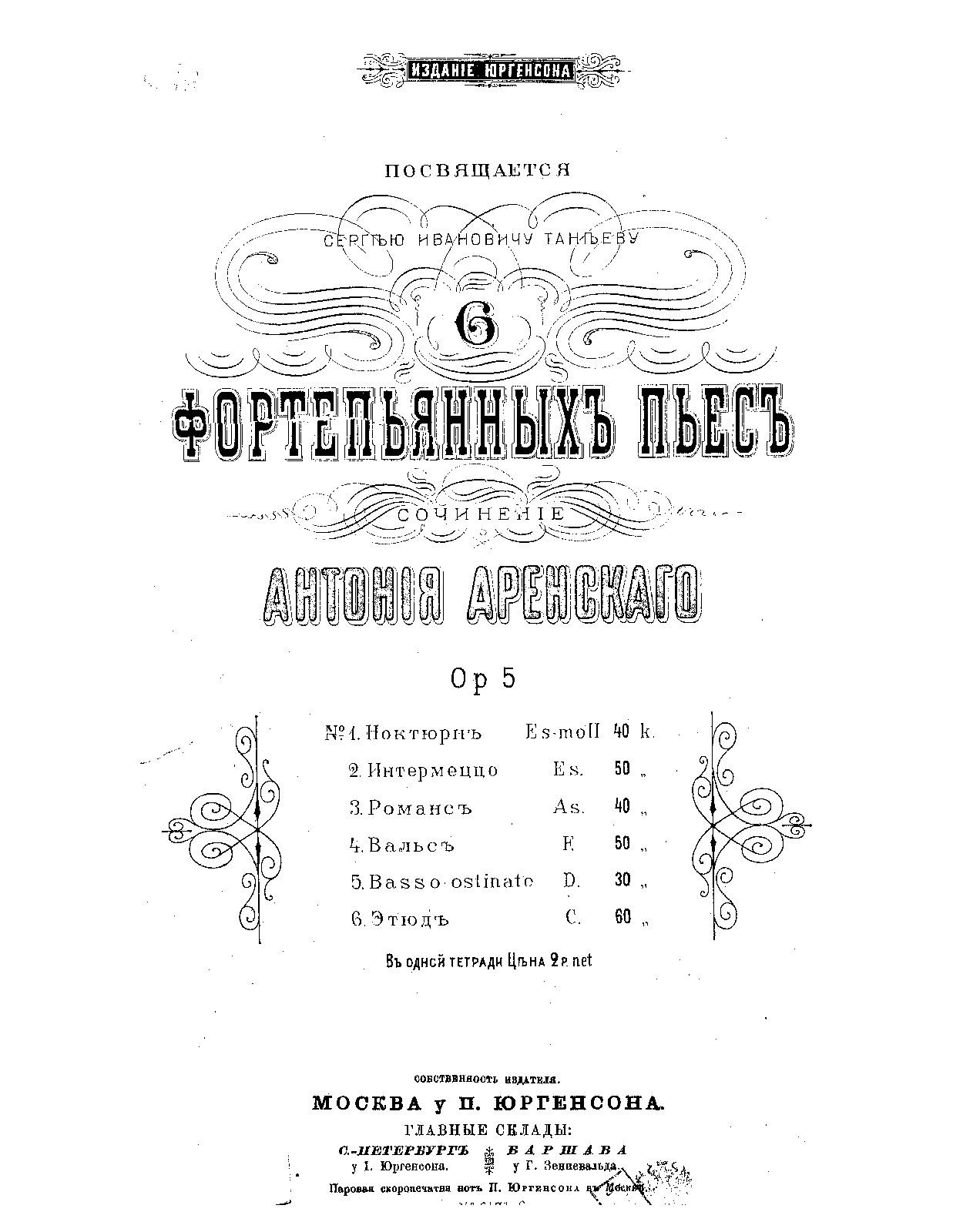 Moscow: P. Jurgenson, n.d.(ca.1885). Plates 6471-76.