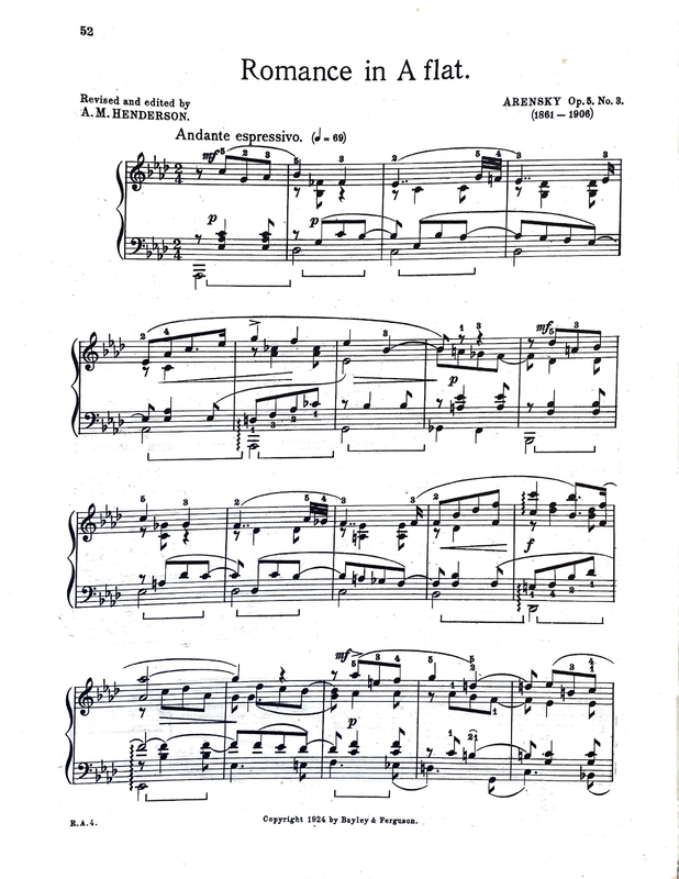 Masterpieces of Russian Piano Music, 4th Series (pp. 52-58) London: Bayley & Ferguson, 1924. Plate R.A.4.