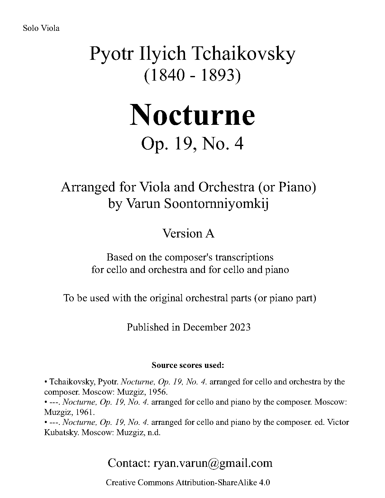 Extra Information The Nocturne (No.4) was also arranged for cello and orchestra by Tchaikovsky, 1888