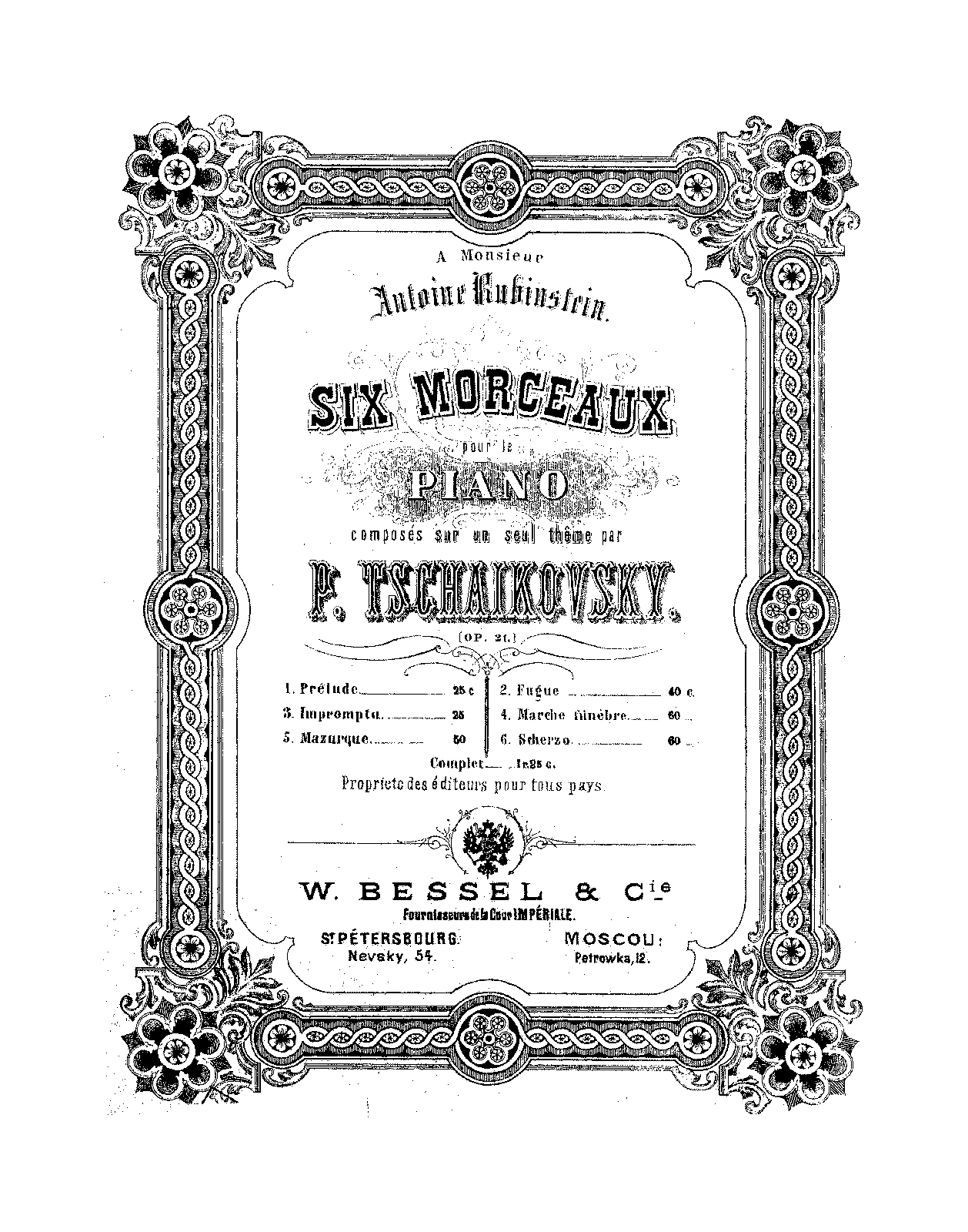 Publisher. Info. St. Petersburg: W. Bessel & Cie., n.d.[1874]. Plate 495-500.