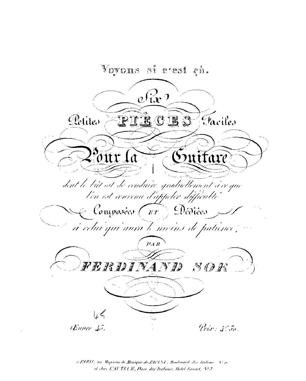 | Alternative. Title | Voyons si c'est çà. Six petites pièces faciles pour la Guitare, dont le bût est de conduire graduellement à ce que l'on est convenu d'appeler difficulté |