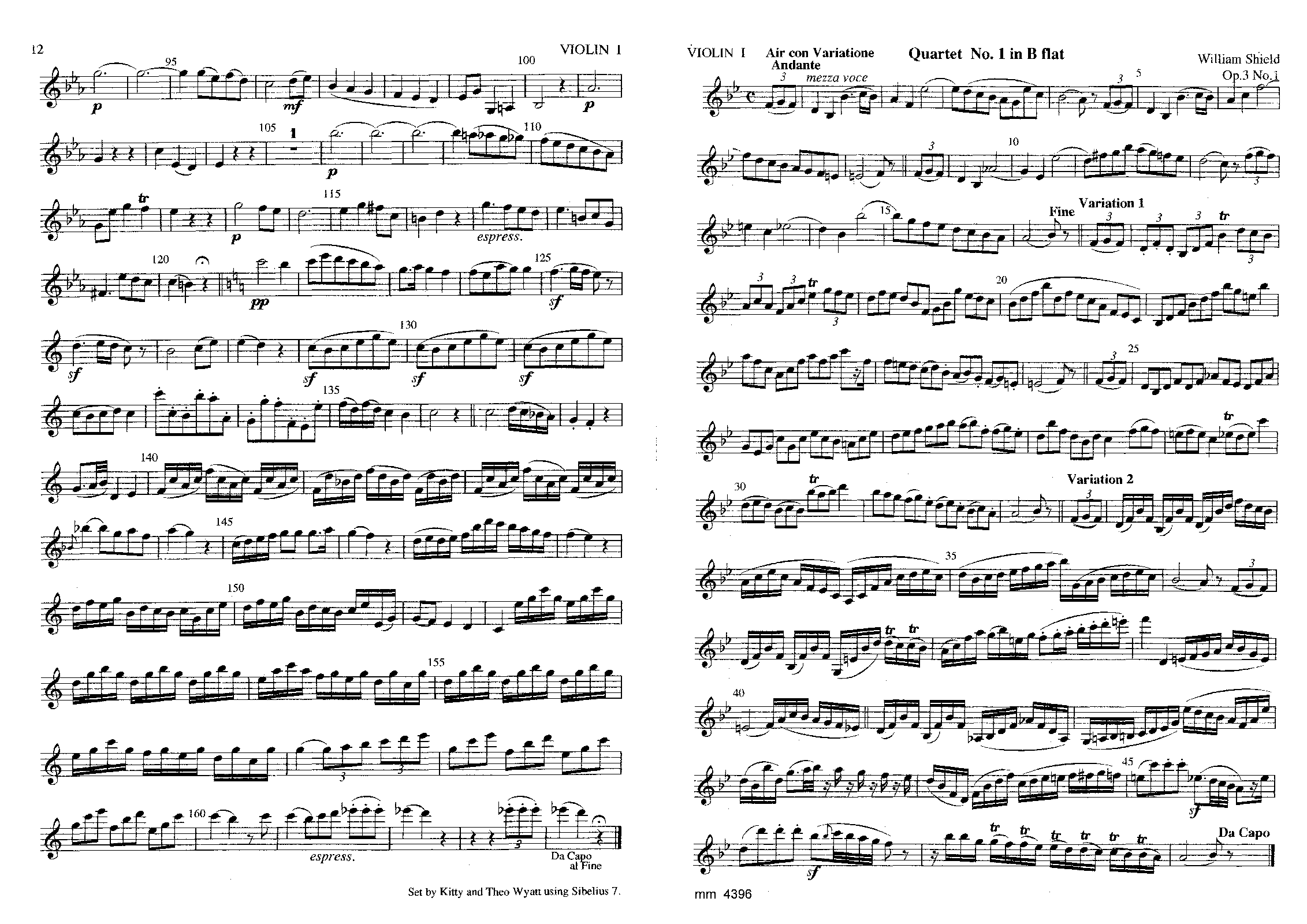 6 Quartettos, five for two violins, a tenor & violoncello and one (No.2) for a oboe (or flute), violin, tenor and violoncello