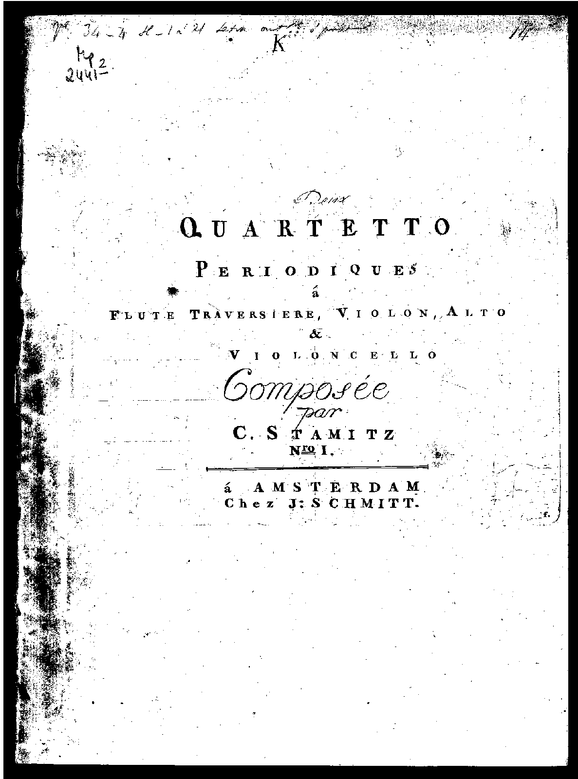 | Alternative. Title | Six quatuors à deux violons, viole, et violoncelle dont deux à grand orchestre, deux concertants, et deux dont les premières parties peuvent se jouer par une flûte, hautbois, violon, ou clarinette |