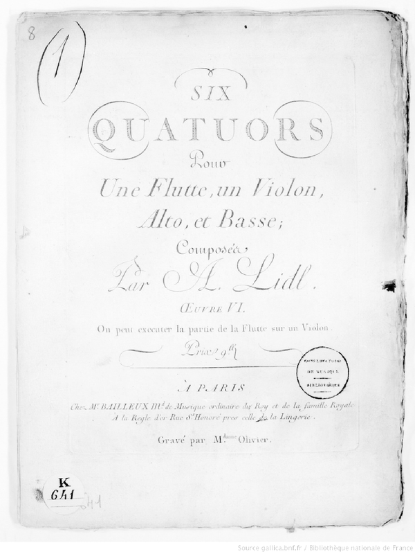 | Alternative. Title | Six Quatuors pour une Flutte [sic], un Violon, Alto, et Basse ... on peut executer la partie de la Flutte sur un Violon |