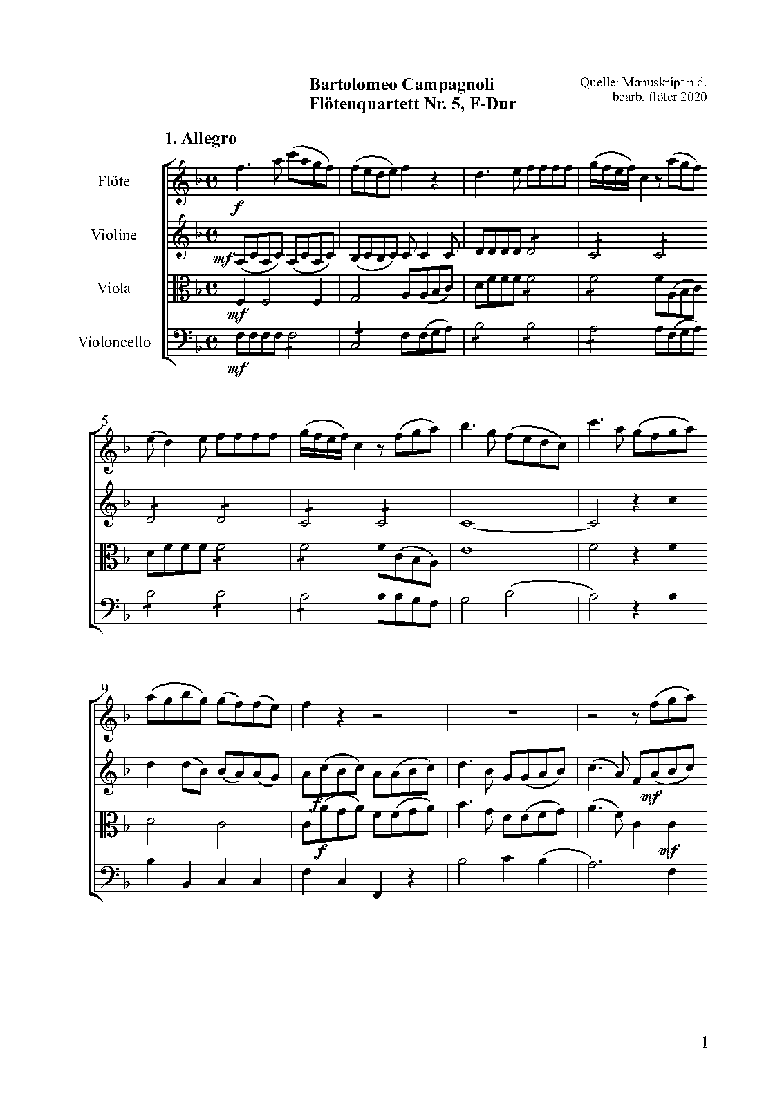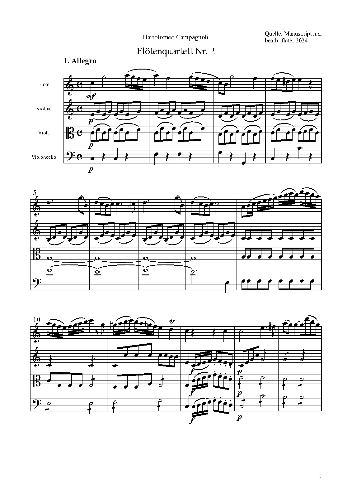 | Genre Categories | Quartets; For flute, violin, viola, cello; Scores featuring the flute; |