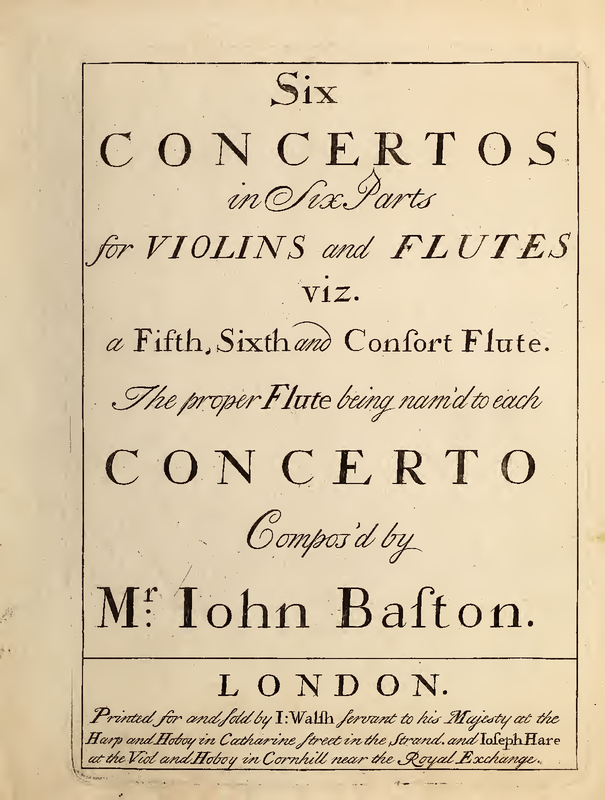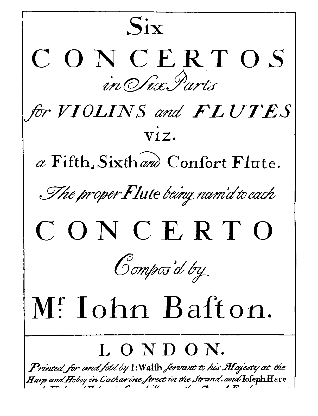 Alternative. Title Six Concertos in Six Parts for Violins and Flutes, viz. a Fifth, Sixth and Consort Flute.