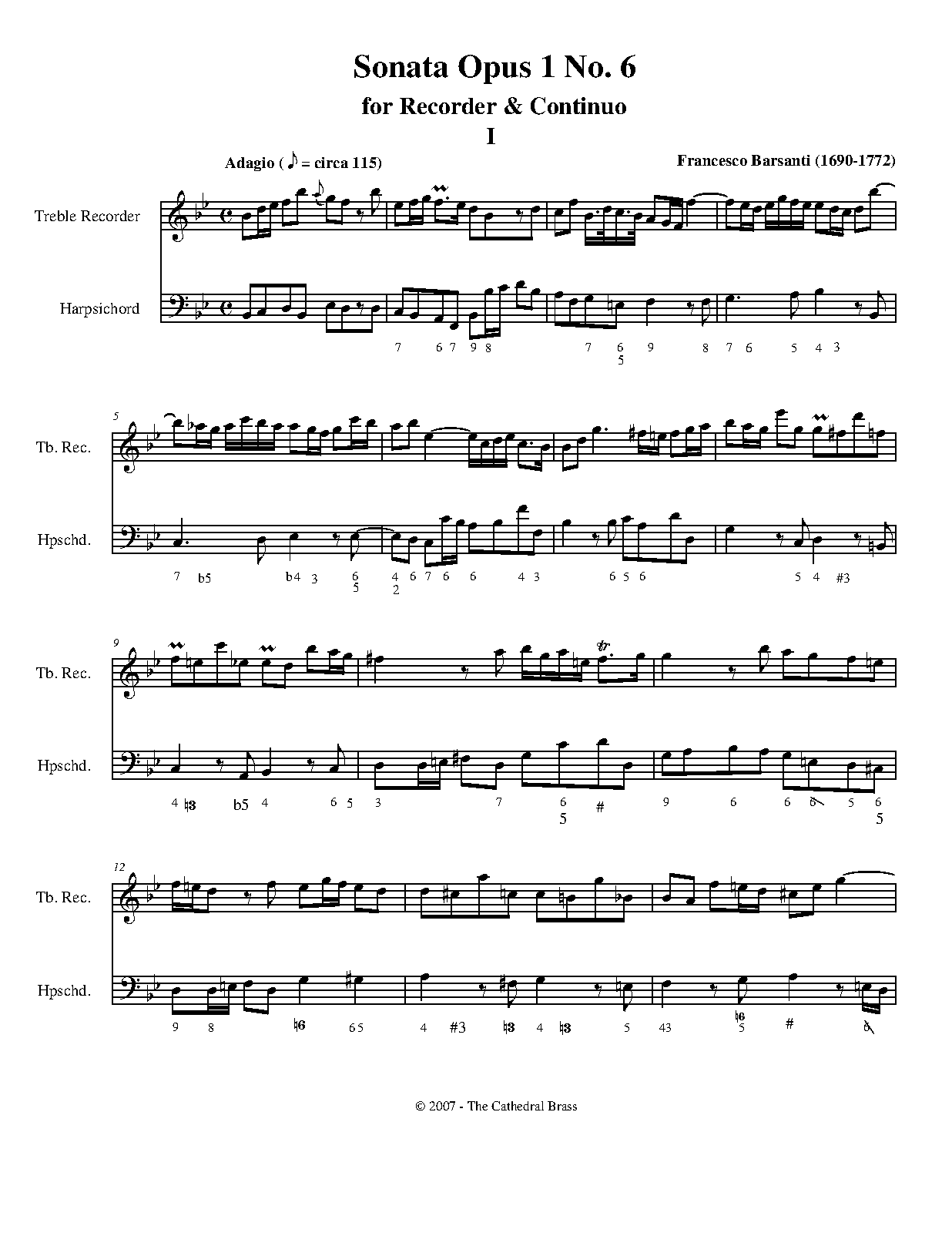 6 Recorder Sonatas, Op.1 (Barsanti, Francesco)
