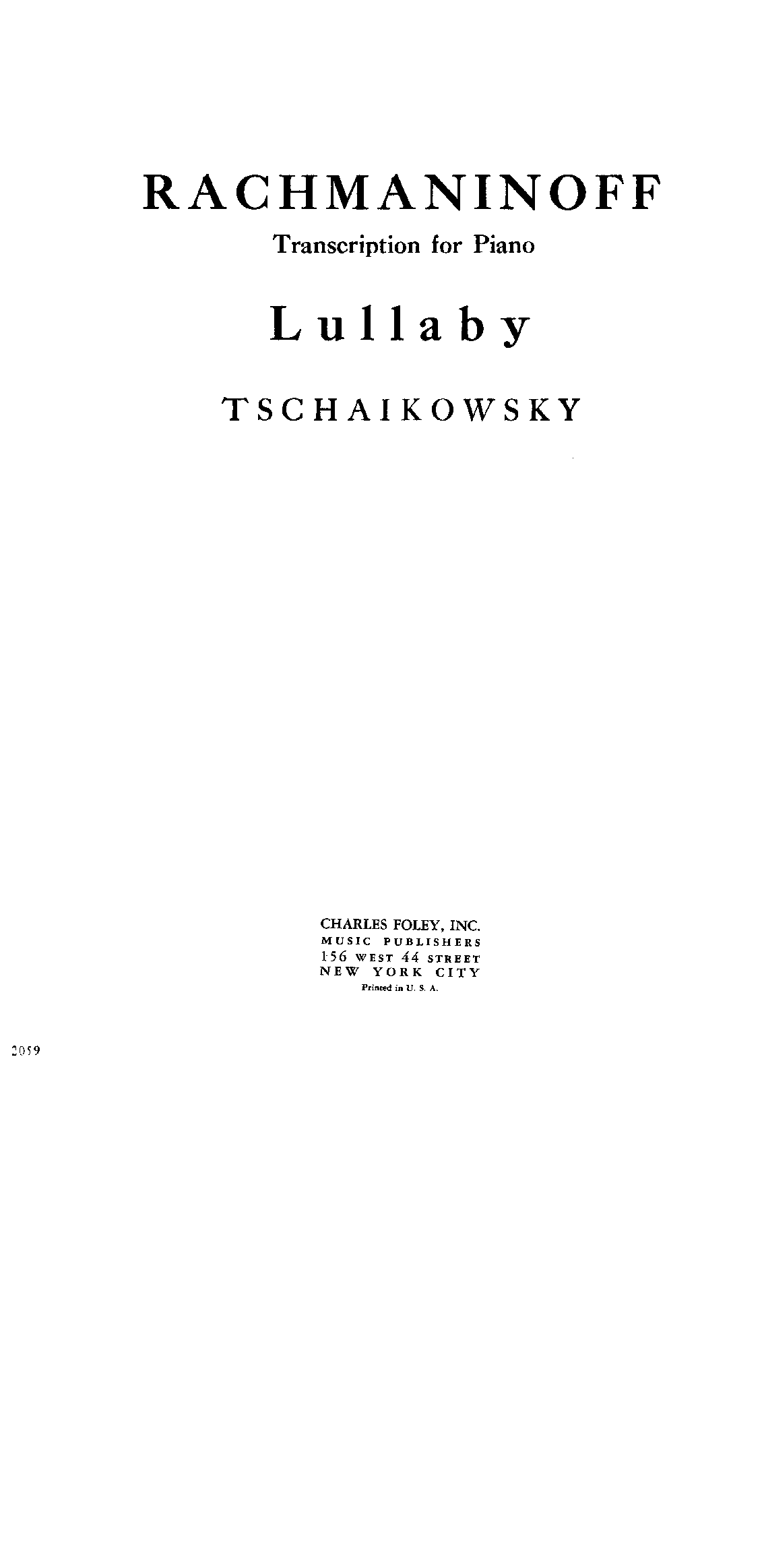 Publisher. Info. New York: Charles Foley, 1941. Plate R-2059.
