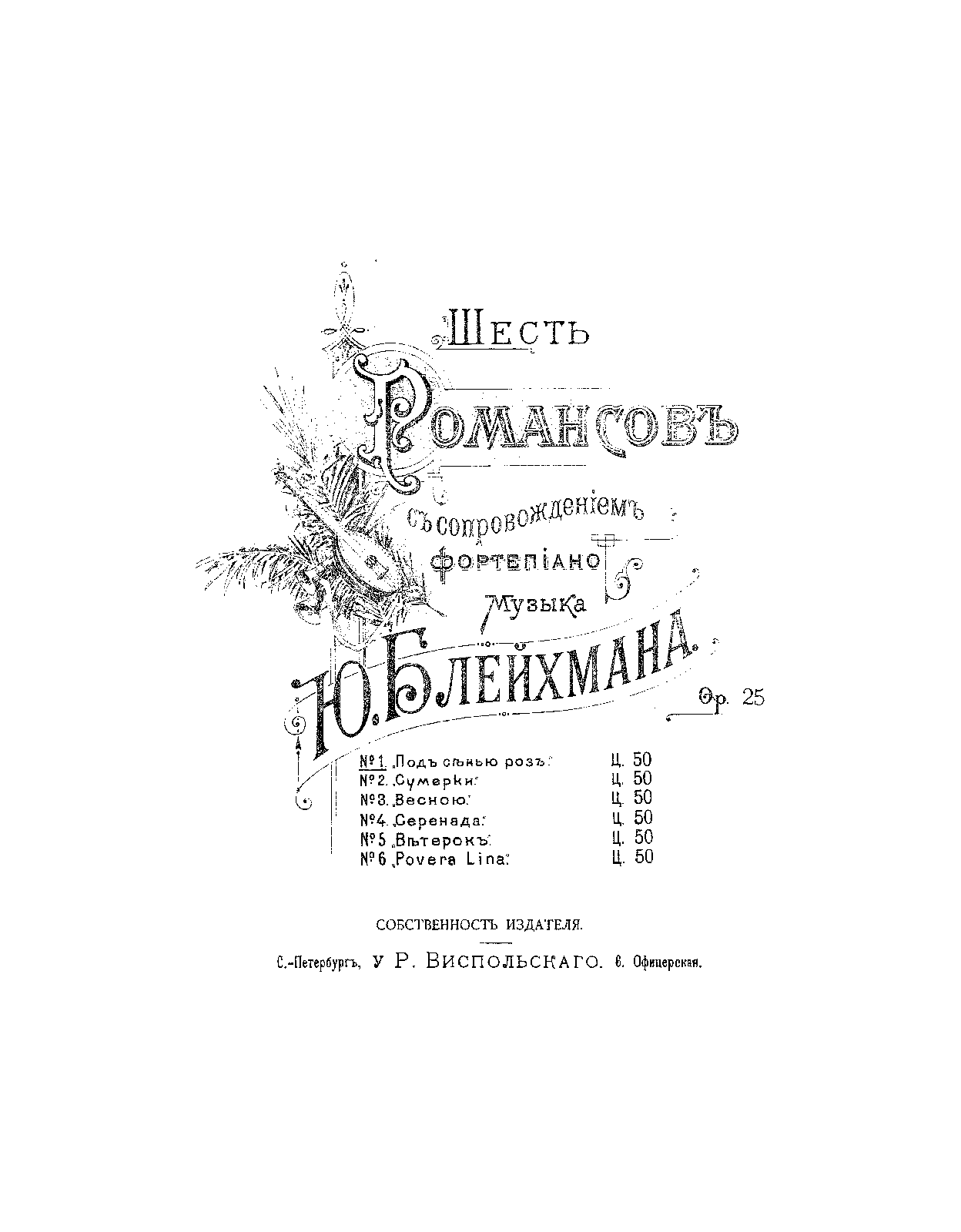 | Genre Categories | Romances; For voice, piano; For voices with keyboard; |