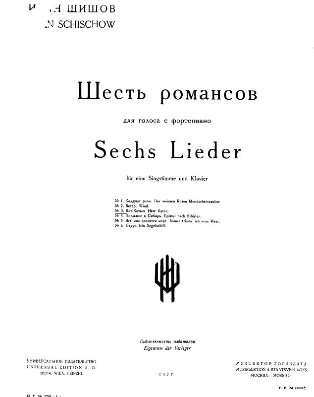 | Alternative. Title | Шесть романсы; Sechs Lieder |