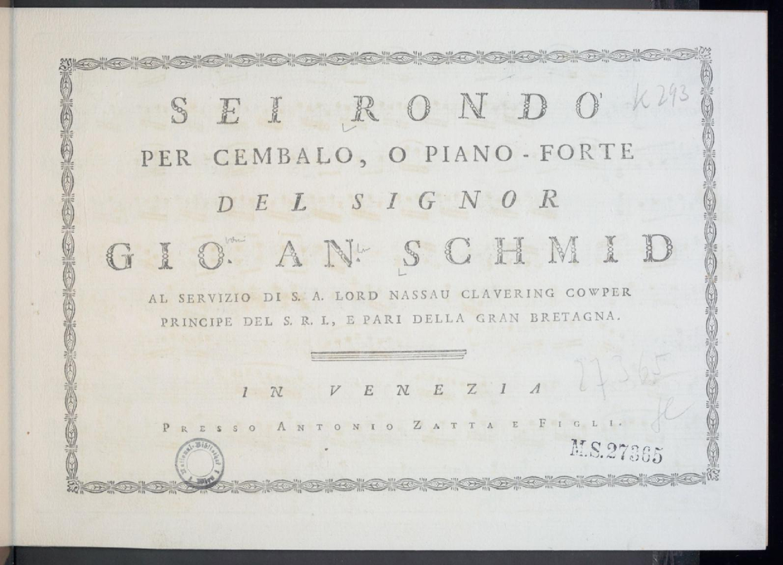 | Alternative. Title | Sei Rondo per Cembalo, o Piano-Forte |