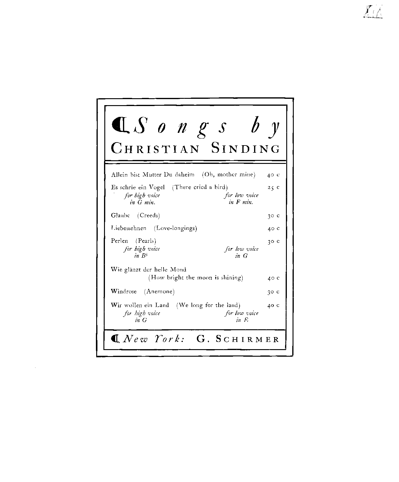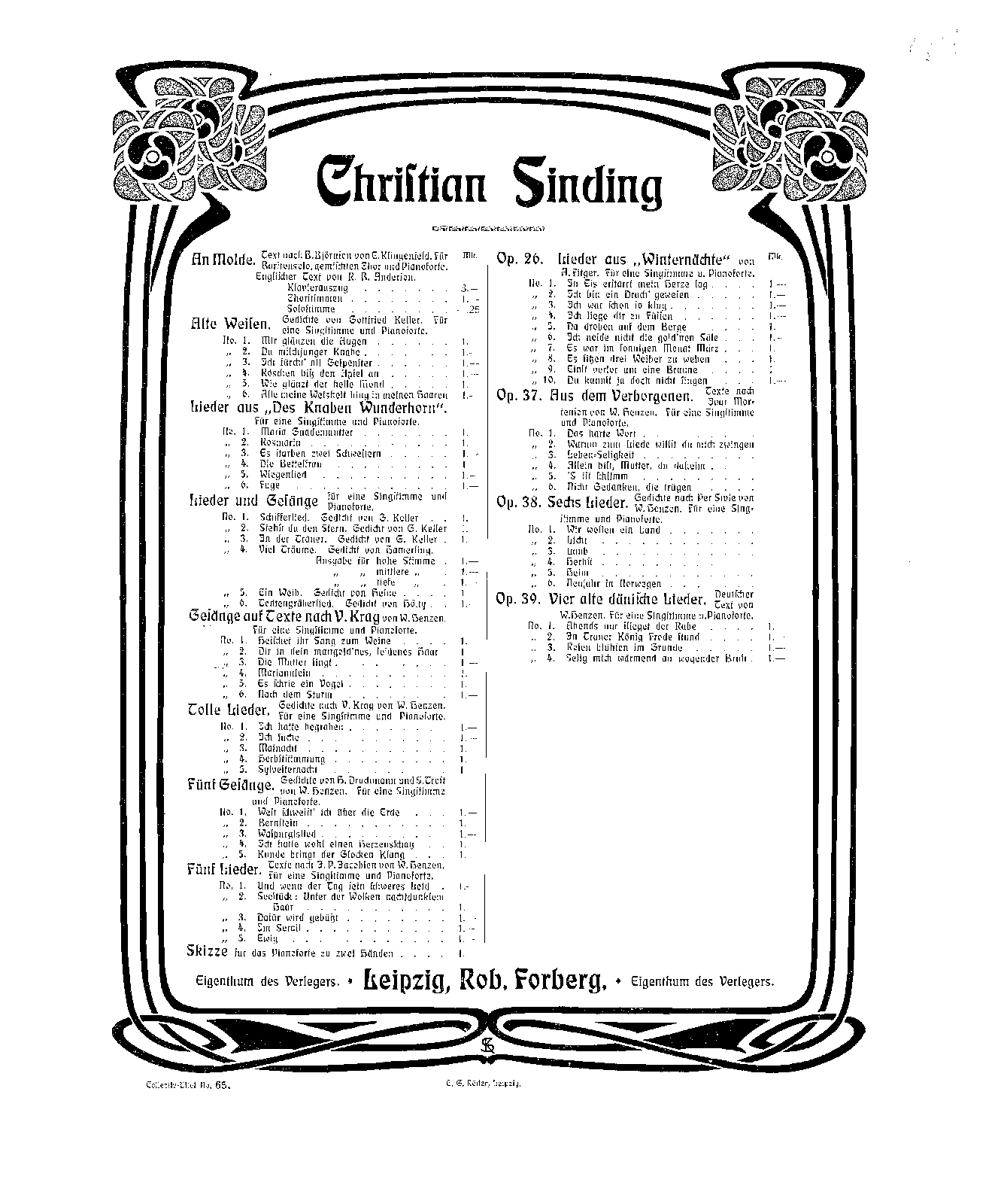 | Genre Categories | Songs; For voice, piano; For voices with keyboard; |