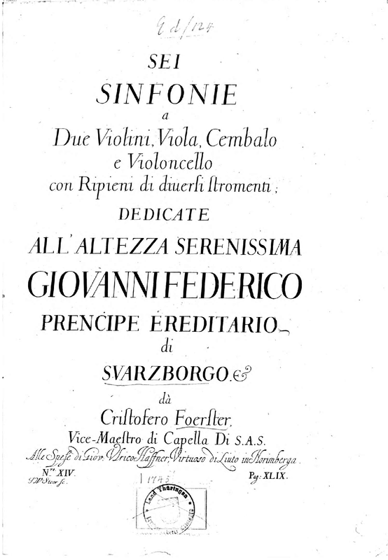 | Alternative. Title | Sei Sinfonie a due Violini, Viola, Cembalo e Violoncello con ripieni da diuersi stromenti |