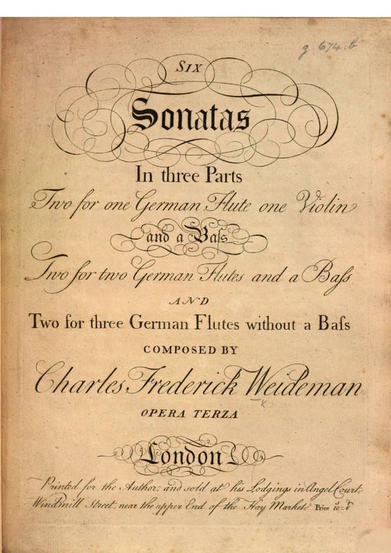 | Alternative. Title | Six Sonatas in three parts Two for one German Flute one Violin and a Bass Two for two German Flutes and a Bass and Two for three German Flutes without a Bass |