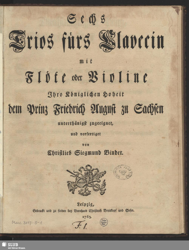 Sechs Trios [sic] fürs Clavecin mit Flöte oder Violine; VI. Sonate a Cembalo obligato con Flauto; Sei Sonate a tre [sic] per il Clavicembalo con Flauto o Violino