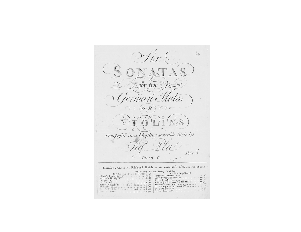 | Work Title | Six Sonatas for Two German Flutes or Violins |