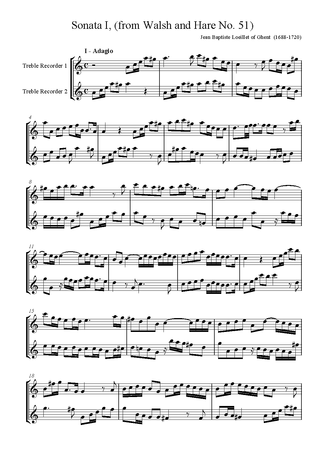 - Recorder Sonata in A minor, Op.1 No.1