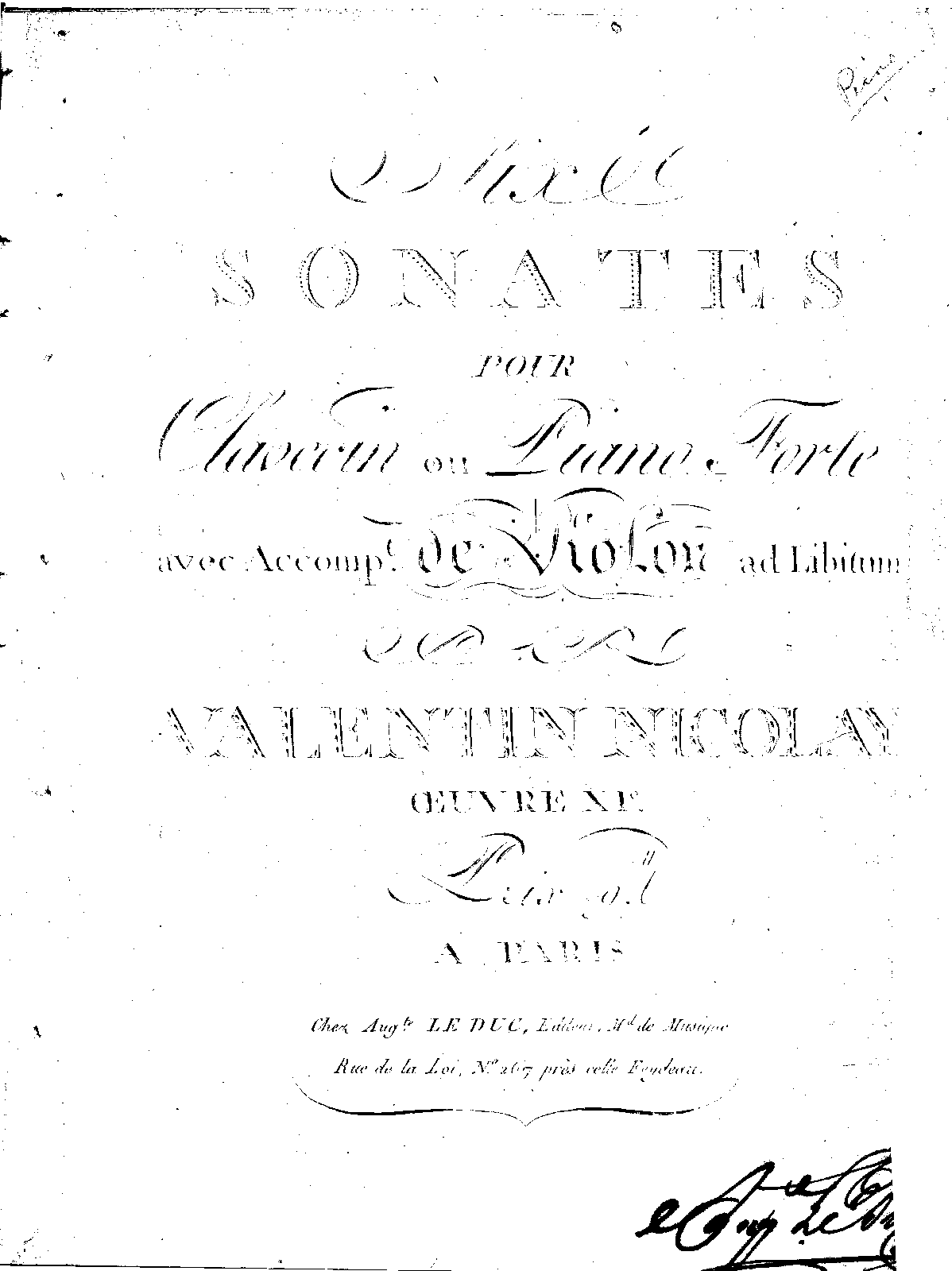 | Work Title | Six sonates pour clavecin ou piano forte avec accompt. de violon ad libitum |