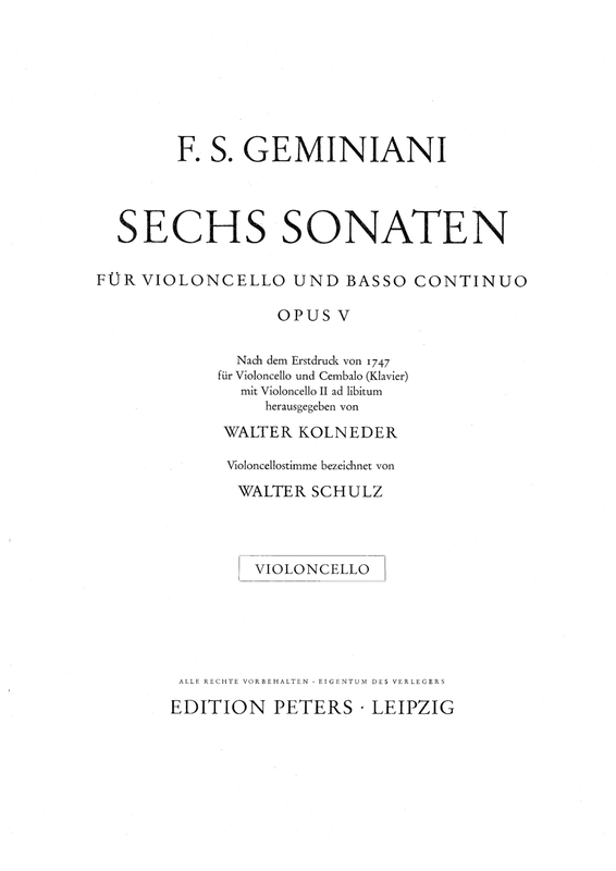 6 Cello Sonatas, Op.5 (Geminiani, Francesco)