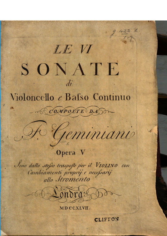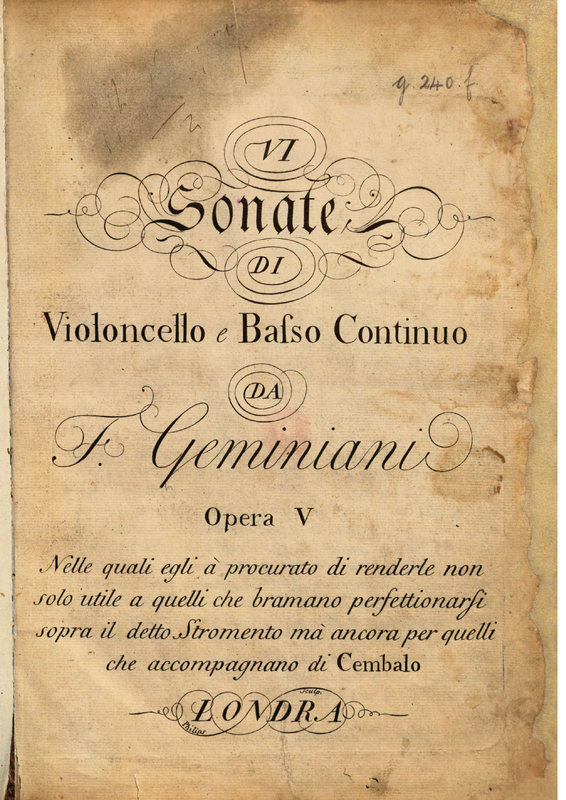 Name Translations sonata per a violoncel en Re menor de Grancesco Geminiani, op. 5; Six Cello Sonatas, op. 5