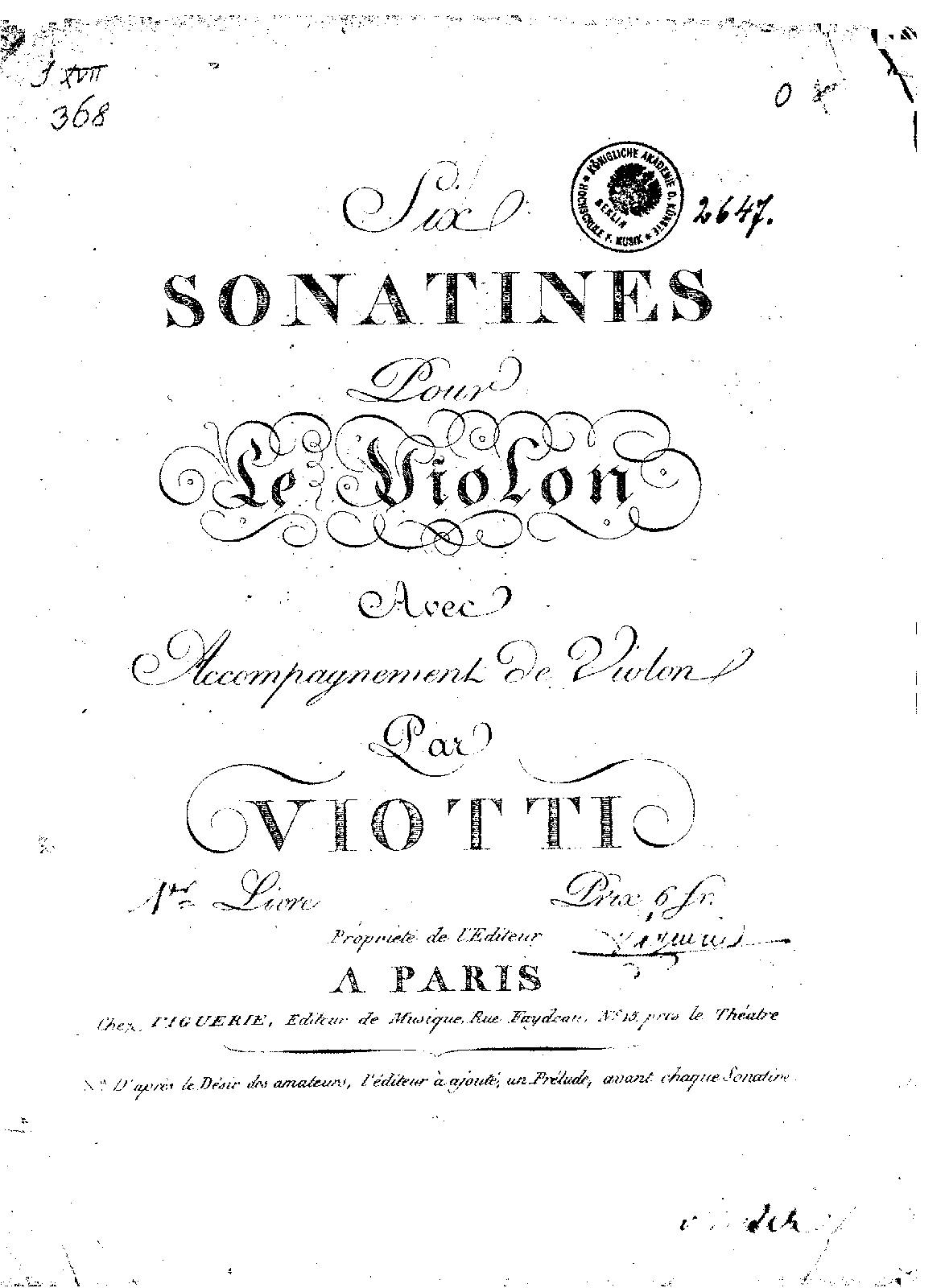 Six Sonatines pour le violon avec accompagnement de violon