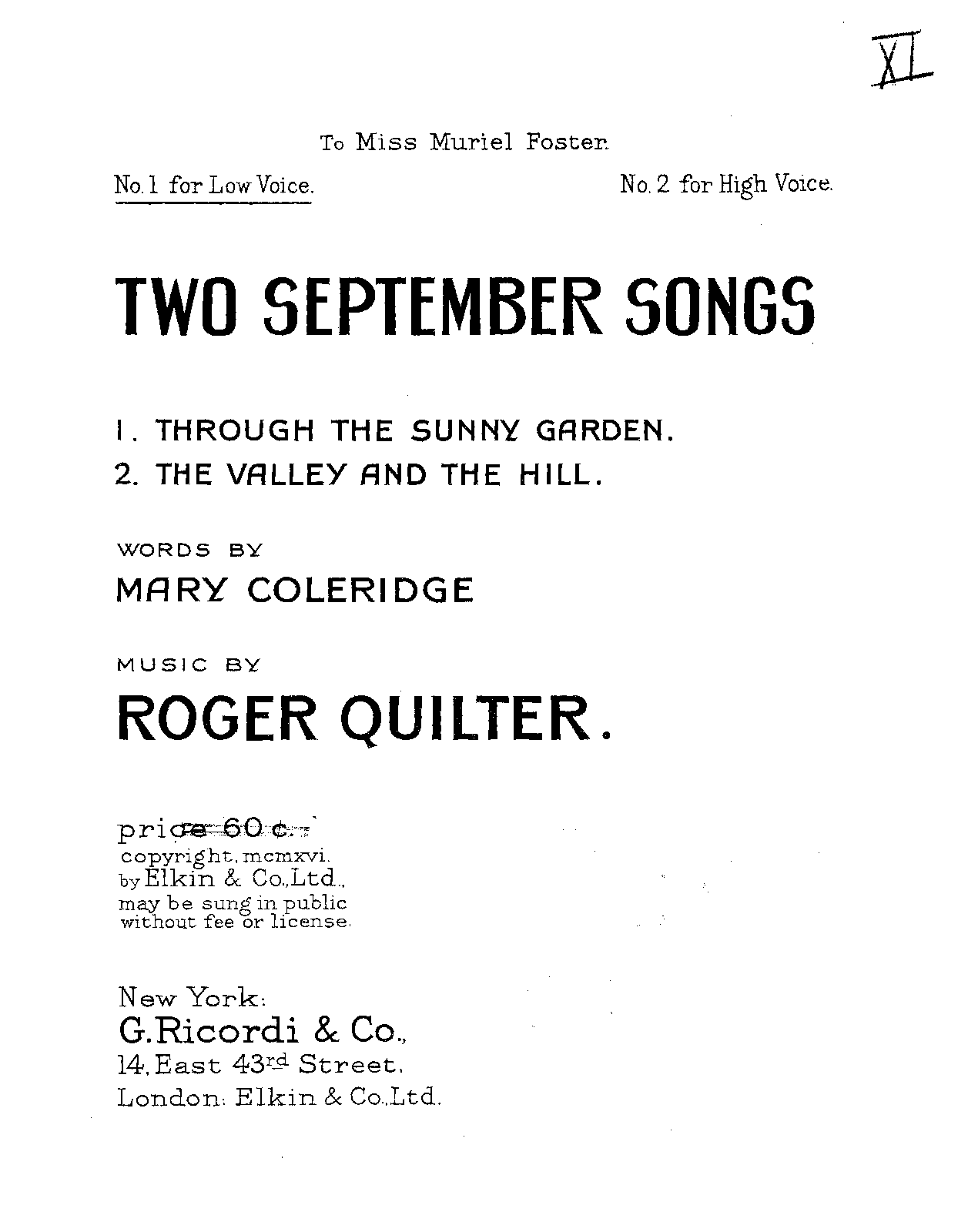 | Genre Categories | Songs; For voice, piano; For voices with keyboard; |